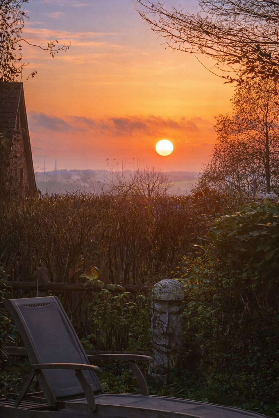 Der großzügige Wohnbereich lädt zum Entspannen ein und bietet direkten Zugang zur ca. 20 m² großen, glasüberdachten Terrasse mit Südost-Ausrichtung. Von hier aus eröffnet sich der Blick in den liebevoll angelegten, maritim gestalteten Garten mit Apfelbäumen, kleinem Teich und gepflegten Grünflächen – ein idealer Ort zum Entspannen.